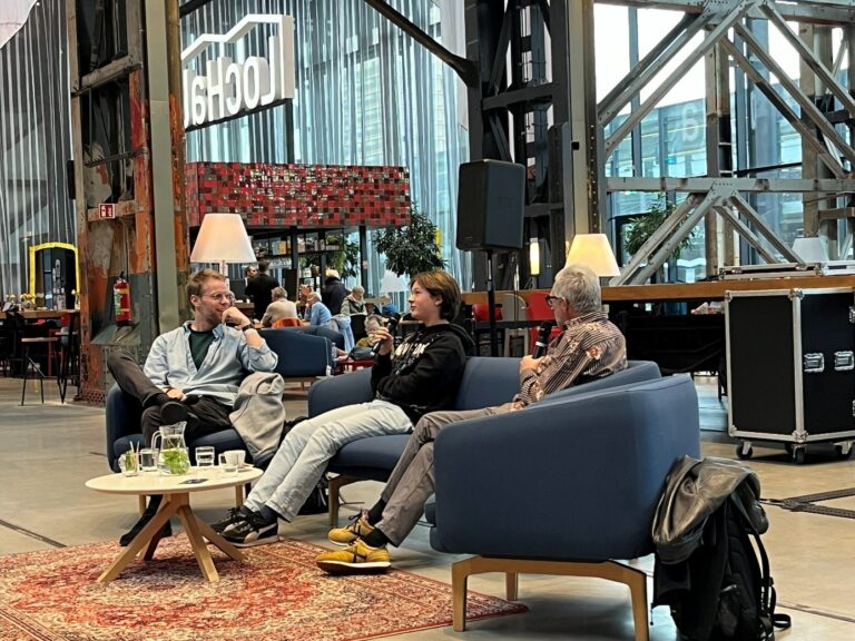 Leerlingen uit vwo-5 interviewen Raoul de Jong in de LocHal