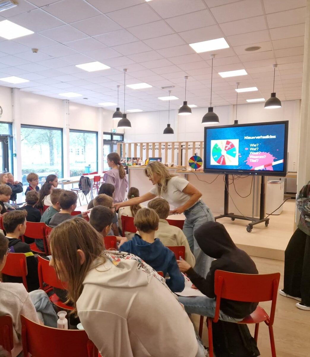 Op donderdag 23 oktober heeft schrijfster Margje Woodrow, bekend van boeken als ‘Kater’, ‘Buitenspel’, ‘Fake trip’ en ‘Snitch’, een bezoek gebracht aan de leerlingen van leerjaar 1. Zij vertelde over haar boeken, haar manier van schrijven, liet leerlingen vragen stellen en zelf aan de slag gaan met korte schrijfopdrachten. Leerlingen waren enorm enthousiast. De komende tijd komen er ook schrijvers langs de andere leerjaren, dus we houden jullie op de hoogte.